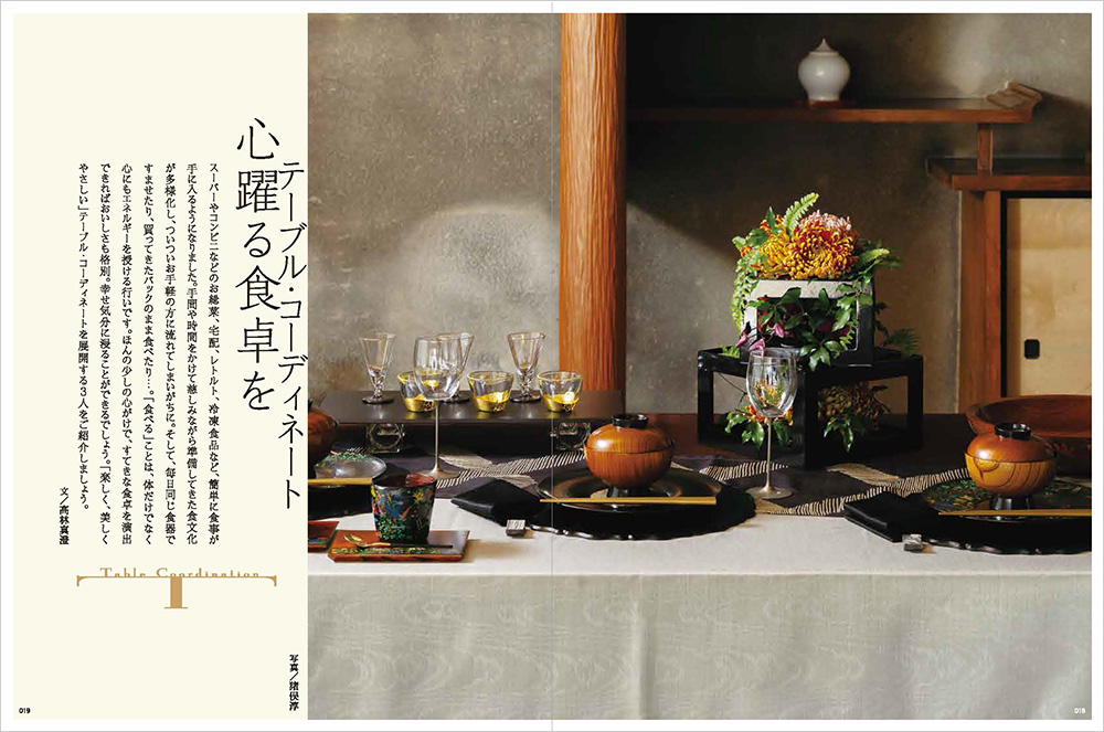 春号は、プロのセンスを散りばめた、すてきな「テーブル・コーディネート」のご紹介です。身近にある布や普段の器も、なかなか出番のない重箱などの漆器類も、ちょっとした工夫で見事に「心躍る食卓」に。