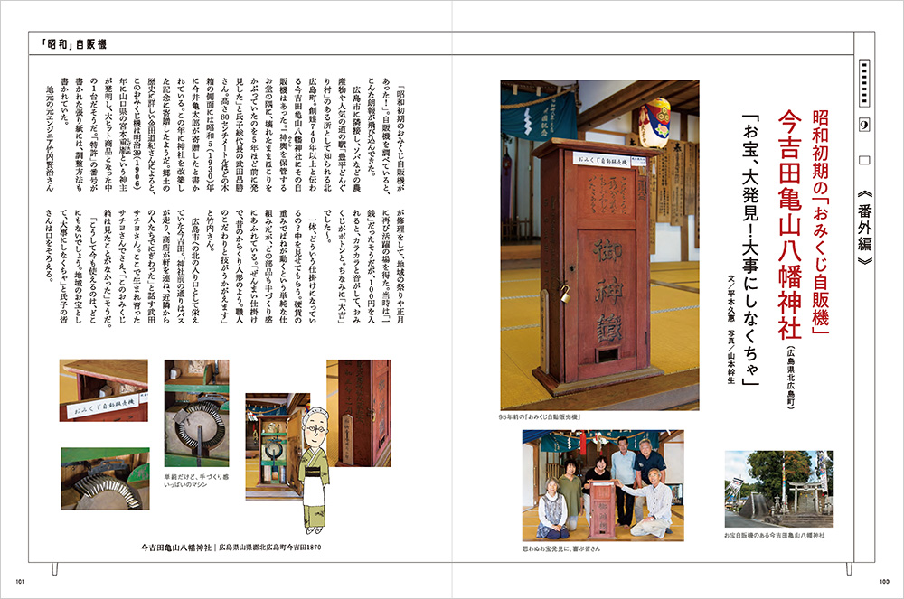 もう一つの特集は「昭和自販機」。50年も前に製作された自販機が、今も全国に60台ほど残っています。そのうち中国地方で現役で活躍する10台の自販機を訪ねました。コスパ、タイパが優先される時代に、その象徴のような自販機の向こうには、古い自販機を愛し、効率よりも「味」や「喜ばれる喜び」に時間や労力を惜しまない人たちがいて、それを知る昭和自販機ファンたちとの温かいふれあいがありました。
